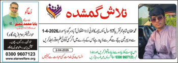 Sufyan son of Zafar Iqbal, dressed in a black shirt, and Muhammad Sayam son of Sarfaraz, dressed in a white shirt, are residents of Cinema Bazaar Mohalla, Mor Khanda, District Nankana Sahib. They have been missing since the 27th. If anyone has any information about them, please contact them.